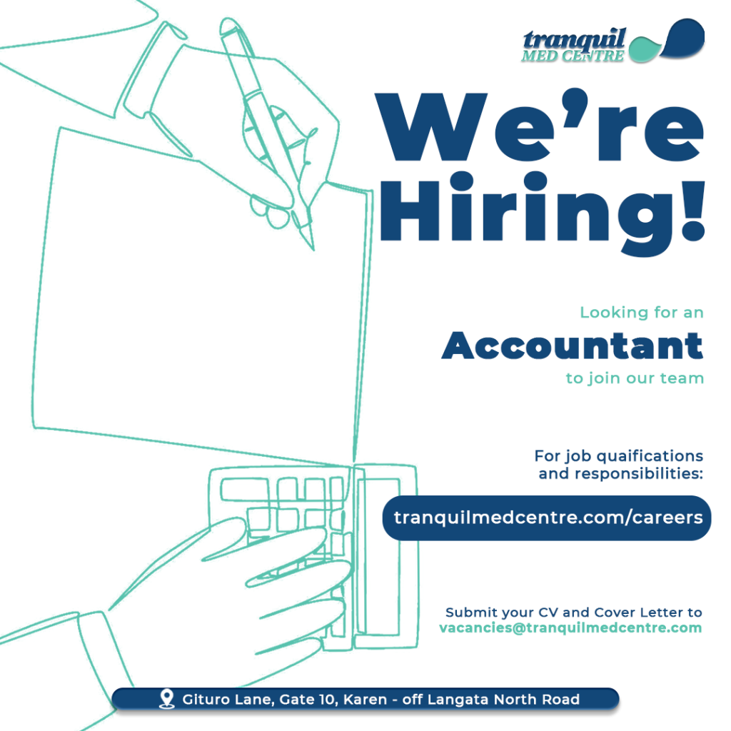If your Professional background, relevant experience and competences match the specifications outlined, please send us your application, CV and copies of your certificates, clearly indicating the position applied for, to vacancies@tranquilmedcentre.com. Shortlisting will be done on a rolling basis.